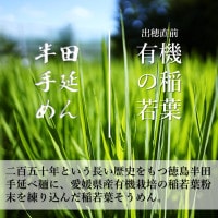 食物繊維が豊富な稲若葉を徳島名産半田そうめんに練りこんだ健康めん。